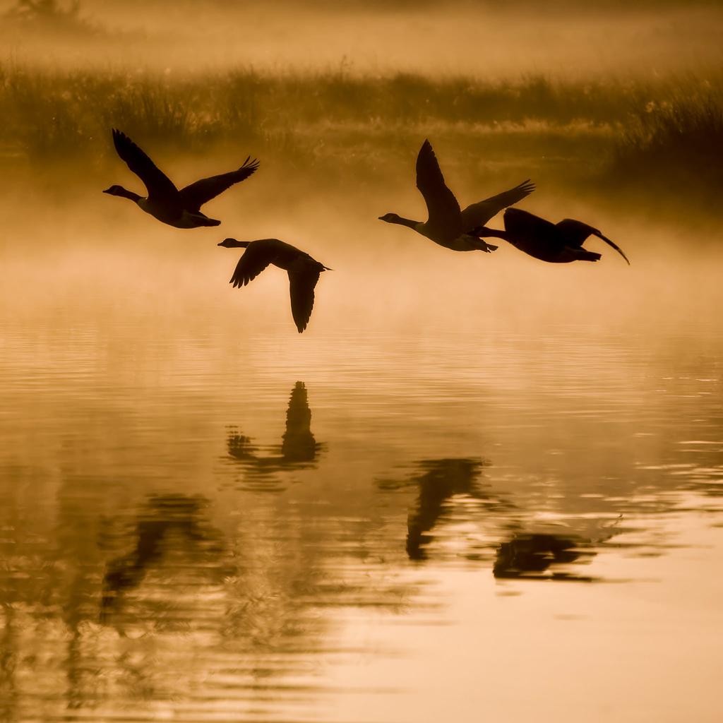 It’s mostly geese. Honkers fly-by and gurgle and obviously, honk. “And they splish splash in the waddy too” says baby, smiling so bright. “That’s right, honey” says Grandpa with a wink. With a strong sense of the season, the cool temperature is felt through the late afternoon winds. Highly 3D with an excellent sense of the various distances.