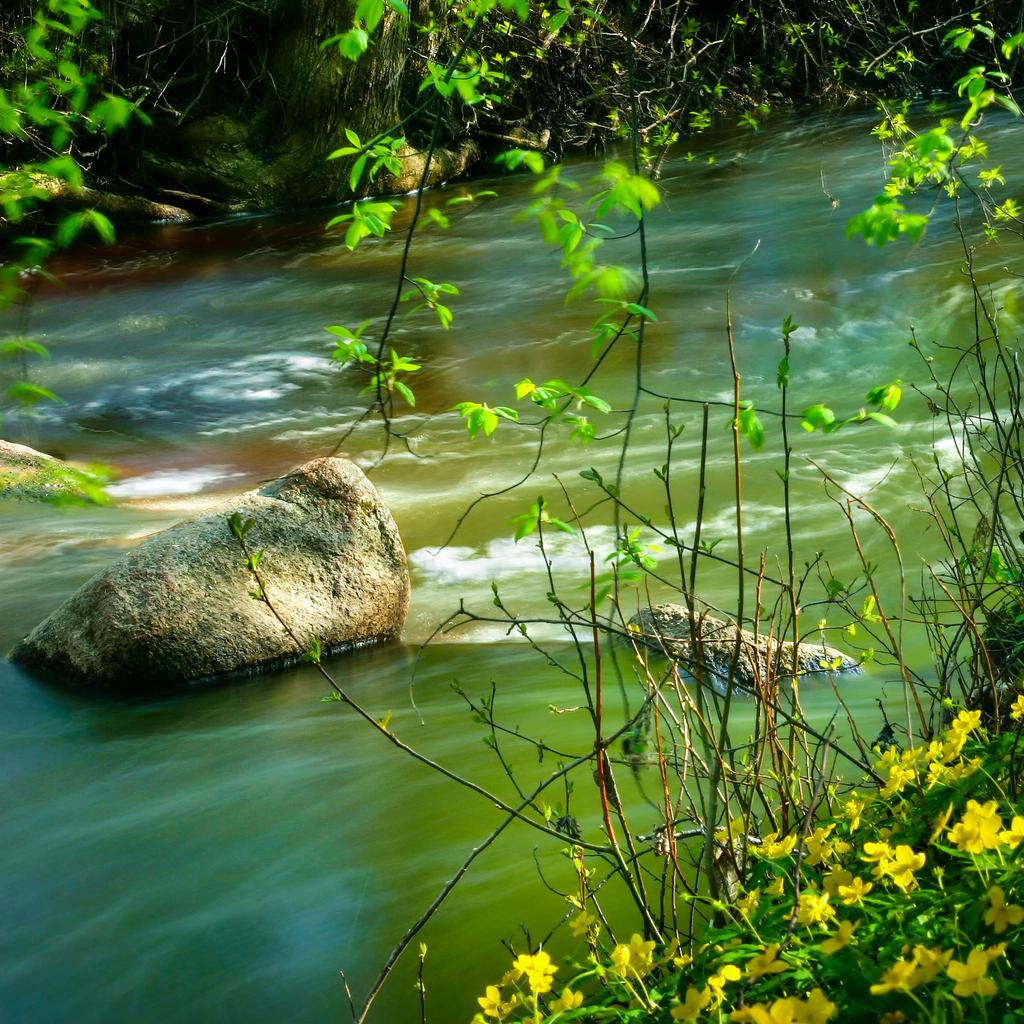 I love the sound of a babbling brook. Although the write-up about this track says a river is 40-feet away, the river sounds close and powerful to me, almost angry, as it overpowers this tranquil place. Even at a low volume, the powerful river seems to dominate my right earbud and sound like white noise or a waterfall, so that's something to consider if you're looking for just the sound of a babbling brook. Nonetheless, this track is very relaxing and I am glad I added it to my collection. Birdsong and insect noise is light and cheerful. I can imagine sitting here drinking a cup of coffee, which I heated up on the nearby campfire as I gaze around at this breathtaking scene. Amazing.