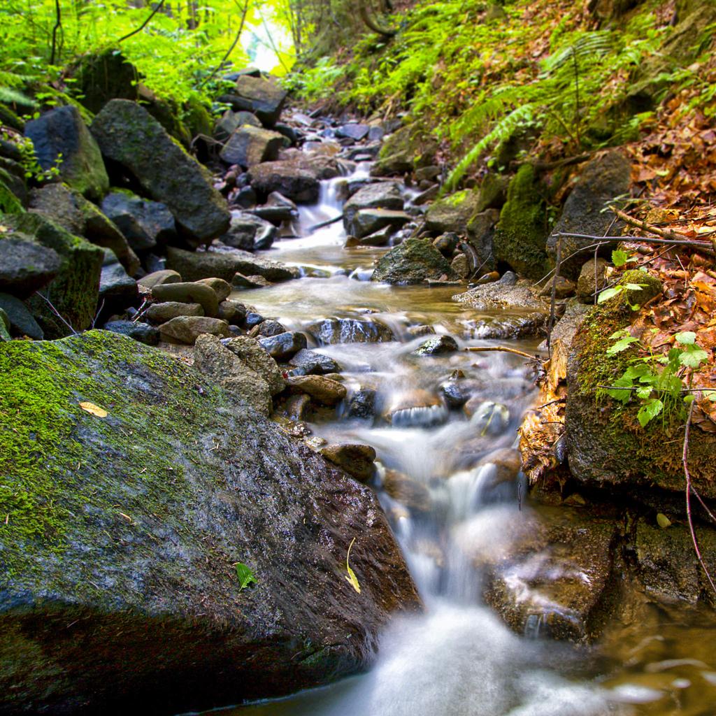 A lush forest creek winds its way down the mountain across 3 small waterfalls... one to the left and slightly above, one in front of you as you sit, and one farther down on the right and somewhat below you. Laced with a delicate balance of sparse activity from a variety of birds. A low wind that occasionally rolls by overhead highlights how tall many of the trees in this old-growth forest are. When played over speakers, it gives the impression that you left the bathtub running and it’s overflowing, and is therefore not recommended. Headphones, on the other hand, present a remarkable experience of immersion and believability; unique for its space, the time of day it creates, and the inviting nature of the creek that begs for you to drink from it.