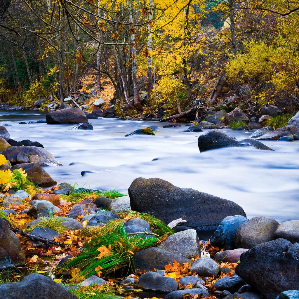 Fast flowing river in the foreground and a distant waterfall to the left. A very steady uniform sound. Great for concentration and masking external noise.