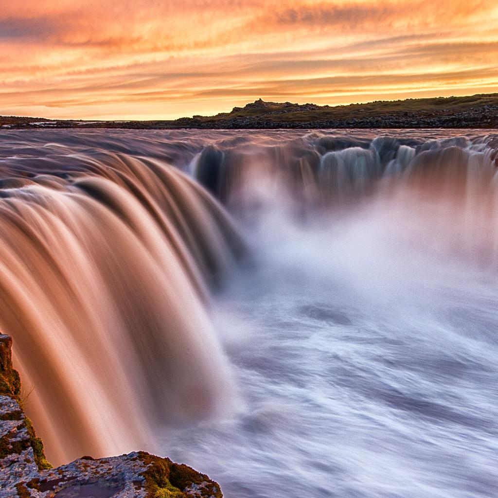 Selfoss is an immense, curving wall of water that plunges into the fabled river Jökulsá á Fjöllum as it flows toward distant Öxarfjörður where it merges with the Arctic Sea. Wind whips across the face of the falls, casting the breath of the river skyward. Stark, black cliffs boldly frame the wide mouth of the falls as the torrential water spills into the channel. This track was recorded at a medium distance, which allows for a greater sense of detail from the water. The base of Selfoss is very turbulent and turns with great force, and this is evident in the sound. Selfoss pulses and throbs with energy, adding an element of natural variation to an otherwise balanced white