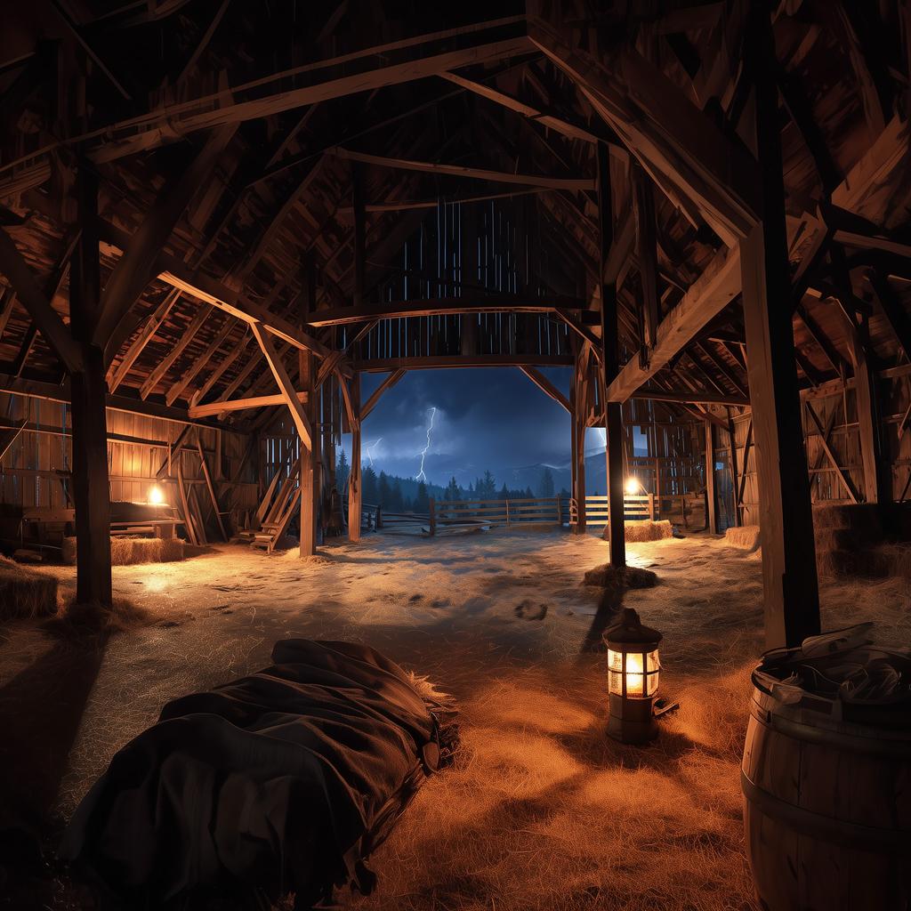 You were being guided by the land without knowing it. You thought you were driven by the storm and by the urgency to stay dry. But your intuition kept choosing a subtle contour in the valley instead of the road, following a path lit by instincts embedded deep within you. A landscape that carries you if you let it. A valley that shapes your movement, without telling you what to do. A storm that forces you to surrender to intuition. This is a destination reached not through strategy, but through flow. Inside the huge barn, the storm becomes a story you can only read in hindsight. All the small coincidences that aligned finally gather into a single question: how did you actually get here? You didn't plan your way to this shelter. You were compelled, and you followed. A small piece in a much larger design; panic would have been your undoing. Thunder rolls through the rafters and rain batters the roof. The details are simple and reassuring: a folded wool blanket, a lantern still warm, hay enough to rest on. The storm continues outside, loud and unrelenting, while inside everything holds steady. This is a very long, dynamic storm captured in a huge wooden barn. Thunder arrives in waves, rain shifts from deluge to mist and back again. Ribbons and sheets of water dance across the massive roof as the skylights get strafed by bullets of rain. And that's all it takes to let go.